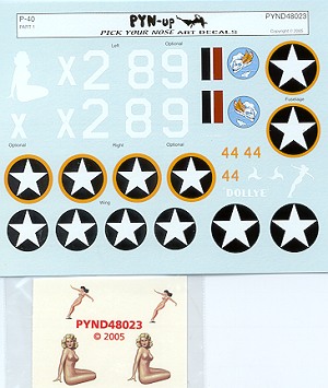 from Pyn-up Decals is this nice pair for Curtiss P-40s. The aircraft are