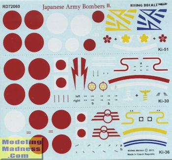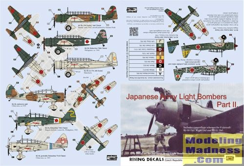 The sheet offers schemes for nine different aircraft grouped by three different types. I should mention that the base color for all these planes is IJA light grey over which some units applied camouflage.