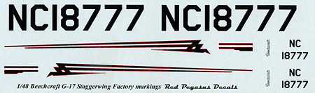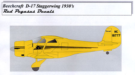 This sheet contains all of the standard markings of a mid-1930s Staggerwing. In this case, the airframe itself is yellow with the wing registration numbers, fin registration, Beechcraft logos and the distinctive cowl and fuselage stripes. There is a placement guide, history of the type and an info sheet included.