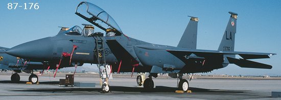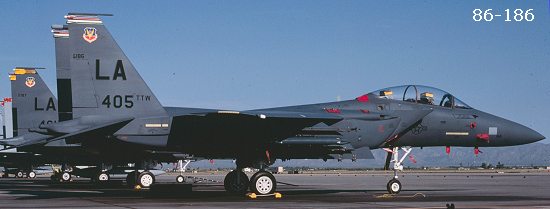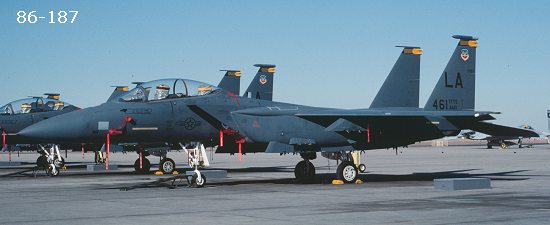 Below are images of the four serial numbers on the sheet. All the photos were taken in 1988-90. You'll note that in the Wing and Squadron CO's plane, the serial is just above the rudder. On the other two, the serials given are way too small. They could have been boss birds at some other time, but I have no photo reference of that. The upper set of eagles with crew names is for the 405TTW boss bird. I have no reference for the other names. You'll note that none of these planes have any unit badges showing other than 176 which has the 461 badge. I'm sure the boss bird had the five badges on the port side fuel tank near the intake.