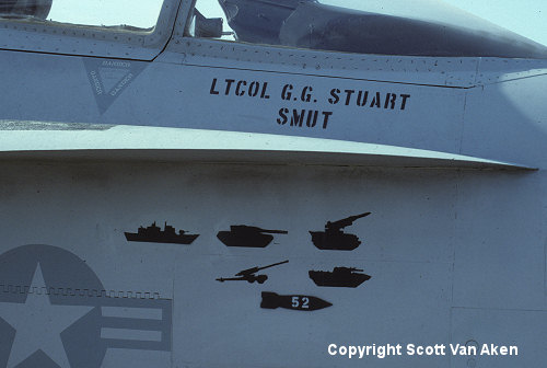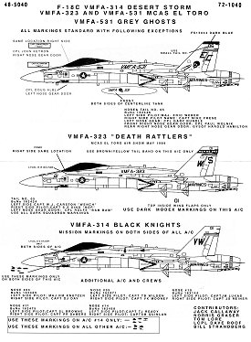 The bulk of the options, six of them, are for VMFA-314 as they participated in Desert Storm and so have nose mission marks included. They also have some of the plainest markings of the three, but then VMFA-314 has always been low-key. Here is a photo of the mission marks on the aircraft depicted, though the number '52' isn't on the decal as it is quite small.