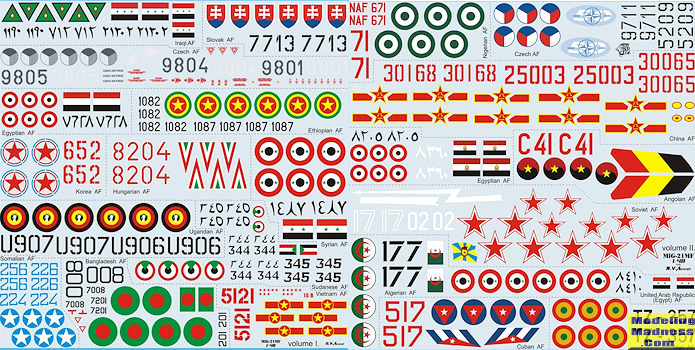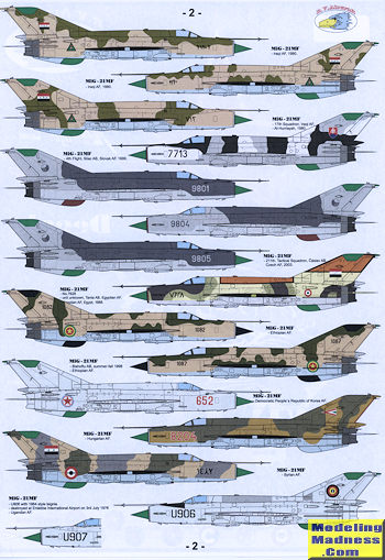 So the bottom line is that the decals are very nice, but the lack of color information and the lack of an upper camouflage guide makes it less than desirable. There are not even any references provided, though if you have copies of African MiGs or Arab MiGs by Harpia publishing you can probably use those for assistance. Unless you have the aforementioned books or an extensive library on the type that includes the various color schemes, I'd stay away from this one.