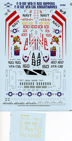 Decals second sheet and continues with the Super Hornet. There are three schemes