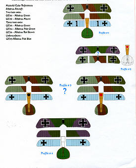 First up is Hans Berr's green tailed aircraft from Jasta 16 during 1917. This plane was flown by several other pilots as well. Three color camo.