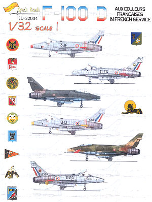 New to the decal scene is Spada Decals. After the usual difficulties a new enterprise seems to have, they have released their first sheets. This one is for the upcoming 1/32 F-100D Super Sabre that is being released by Trumpeter. This sheet covers six aircraft in French service. The F-100 was the main fighter bomber during the 1960s, until replaced by the Jaguar. There are basically two wings covered by this sheet, EC 3 and EC 11.