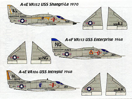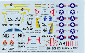 This particular sheet is also for a Platz kit, the new A-4E/F Skyhawk. Starfighter Decals is giving you three markings options on this one, all in the light gull grey over white scheme. The kit includes all of the markings you'll need for all three planes, including the red intake warning markings, though you will have to paint the front of the splitter plate.