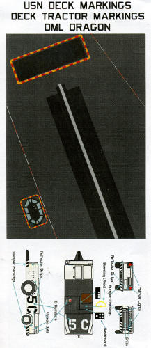 This is a pretty neat idea. Dragon/DML does deck sections for several of their kits and those include deck tractors as well. This sheet is designed to be used on those kits to replace the often missing or poorly done kit decals.