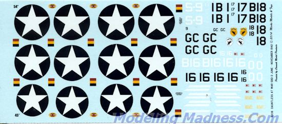 sheet contains enough insignia for two planes and any stencil markings will need