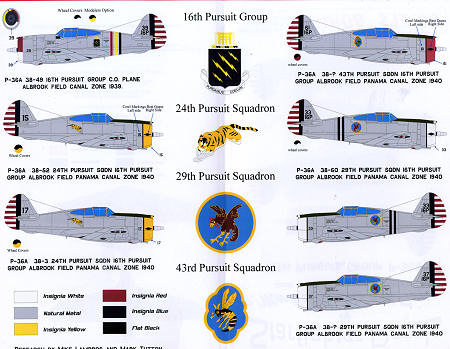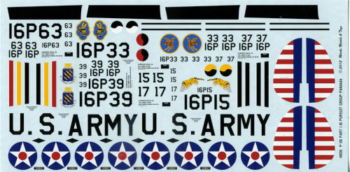 Once agin, Starfighter Decals comes through with a superb set for an older kit. This is for the Hobbycraft kit, that has also been boxed by Academy. It includes markings for six aircraft of the 16th Pursuit Group based in Panama during 1939 and 1940. All of the aircraft are in the then standard overall unpainted metal with flat black anti-glare panels. All but one, that is. The sheet itself is superbly printed by Cartograf. I should also mention that there are serial data markings for all of the aircraft as well.