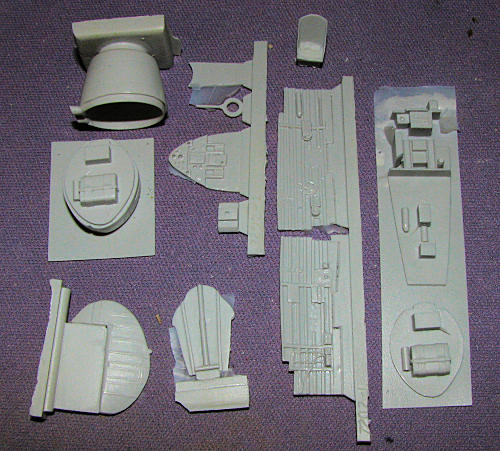 Long delayed with the first run quickly sold out, Starfighter Decals now has its SBC-3 conversion set on the market. This set allows you to convert the Heller SBC-4 into the earlier SBC-3 variant. The resin itself is superbly done with no molding glitches at all. It includes a complete replacement interior with floor, seat, sidewalls, bulkheads and radio gear. It also has an engine accessory section, cowling and rudder.