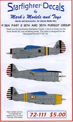 Starfighter Decals 72-111: P-36 part 2 - 16th and 35th Pursuit Group