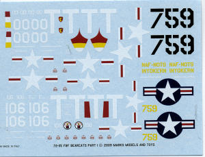 There are enough insignia to do two full aircraft and using insignia from other sheets, you can easily do all three. These are very nicely printed by Cartograf. The instructions give additional info like fin tip colors and prop boss colors as well as proper markings placement.