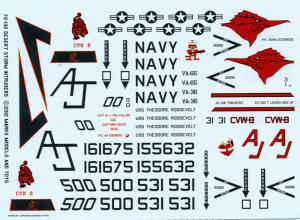 There are several A-6E kits available in 1/72 and due to the nature of the markings, any of them will be useful for this set. I should add that both markings options are for units aboard the USS Theodore Roosevelt.