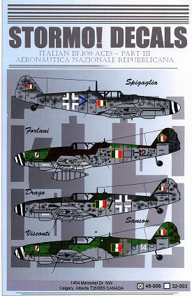 First up is the 109G-6/R3 of Capt. Giovanni Spigaglia of II Gruppo Caccia in November 1944. This aircraft is in standard RLM 74/75/76 with the taller wooden rudder of late build G-6 versions.