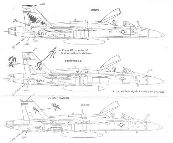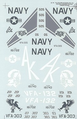 Next is a bit of an odd one from VFA-132. Apparently they were trying out new schemes and this one is overall FS 36375. It is the plane with the white markings. The sheet doesn't say if it is the wings or the fuselage that get the white insignia, but I'm betting on the fuselage.