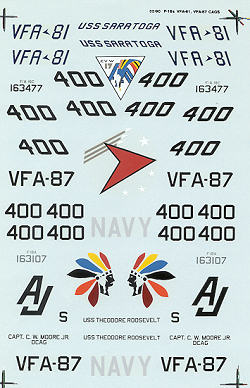 The other option is an F-18A from VFA-87. Like the previous aircraft, the unit marking on the fin is in color.