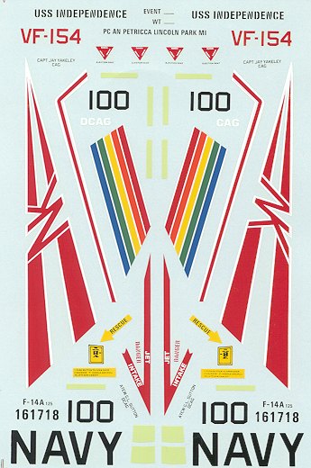 The VF-154 bird on this sheet is the CAG commander's aircraft. As is typical of the time, the colors are on a black tail. The aircraft is painted in overall FS 16440 gloss light gull grey. This makes not only for an easy to paint airplane, but also makes for a very colorful plane.