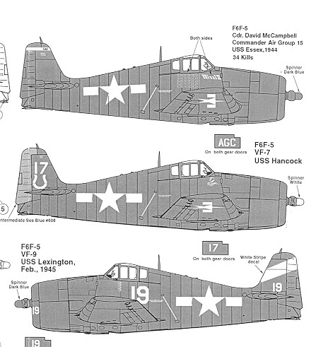 You'll note that these are all early F6F-5s according to the drawings as they have the small rear window behind the cockpit canopy and no 'bulge' on the cowling for the exhaust.