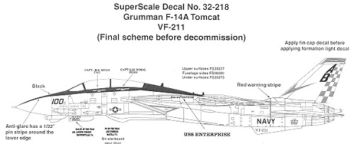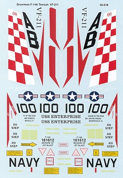 This is an up-scaled edition of a recent 1/48 sheet and is the final scheme worn by VF-211 before it was disestablished (I have to point out to the non-nautical that squadrons are disestablished; ships are decommissioned as are units of the 'lesser' military services!).