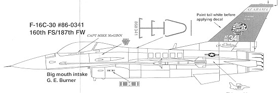 Even Later Note: Viper Enforcer informs me, "That particular jet F-16C 86-0341, is a Block30E. Being post "86-0262 (Last small mouth Block 30)", it does have a MCID (Big Mouth) intake. The Tamiya F-16C is strictly a Block 25/32 C model with only a Pratt motor and NSI intake option. The Academy kit can only be built only as a block 40/42/50/52 C model. Neither would not be correct for the decal application as the Academy kit has the heavy weight MLG/bulged gear doors and the Tamiya kit has the NSI intake and Pratt only motor. The Tamiya F-16CJ kit would fall in the same category as the Academy kit, as it is a block 50 only."
