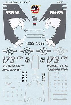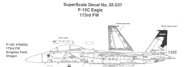 Superscale has provided the wing commander's plane on this particular sheet. It appears to be in the Mod Eagle scheme of FS 36251 and FS 36176. There are a goodly number of stencils and walkway markings included on the sheet. For kits in this scale it is again Tamiya and Revell that offer F-15s, though most will want the newer and more accurate and more expensive Tamiya kit.