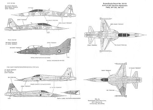 Superscale sheet 32-53 is for a variety of aircraft including the F-5E, F-5F, and TA-4J. They are all pretty interesting schemes, but all basically blue/grey. If I recall correctly, most of these schemes were in place around the 1985 time frame.