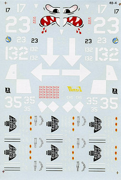 Five options on this sheet and like nearly all those old sheets, no insignia are supplied. That had to come from their insignia sheets. What is supplied are instrument panel and seat belt decals along with some data markings.