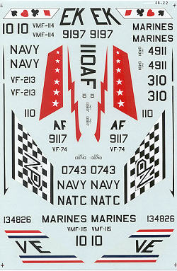 Finally a VF-74 aircraft. I'd recommend painting the rudder white on this as the white background to the stars on the tail is visible through the decal.