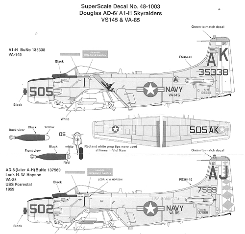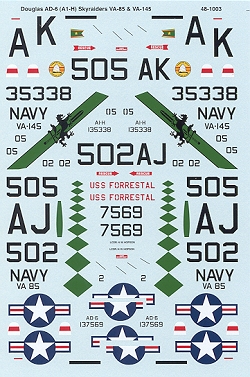 sheet covers two light gull grey over white A-1 Skyraiders. The sheet has