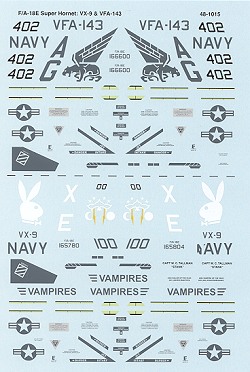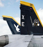 First is the VFA-143 aircraft and while ti has a tail code, no ship is given. This unit is one of those that transitioned from the F-14B Tomcat.
