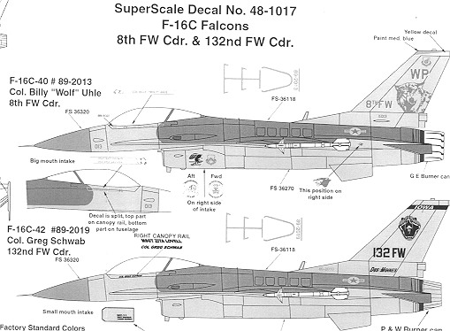 Both have really neat fin markings and should make for a nice model when done. I should point out that all of Superscale's drawings for the F-16 are to be used for placement only as they show the very early F-16-5/10 horizontal stabilizers!