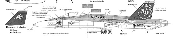 second Hornet sheet is for a VFA-83 F-18C. The fin on this one is in very