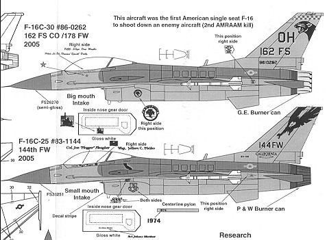 The other is from the 194 FS/144 FW of the California ANG. This is the 'small mouth' option. For those of you wanting to do an earlier F-16A/ADF, you can use these tail markings as they are the same as used on the earlier aircraft.