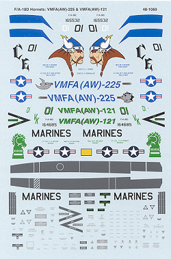 The other is also a squadron CO's aircraft, this time from VMFA-121. Markings on this one are in green as fits their unit colors. On this one, the tails are black on both sides.