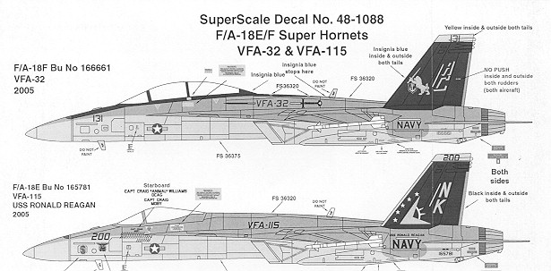 First is from an ex-Tomcat unit, VFA-32 from 2005. On this, the area around the cockpit and the fins will have to be painted Insignia Blue. Fin tips are Yellow.