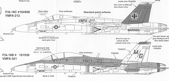 nice sheet for some USMC Hornets. The recommended kit for both is the Hasegawa