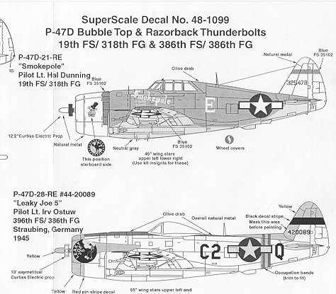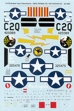 The sheet includes insignia and data markings for one. You'll see that on 'Smokepole' the fuselage insignia is farther aft than the norm.