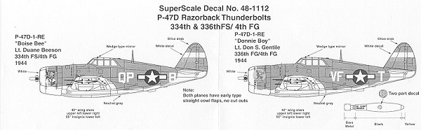 First up is 'Boisie Bee' the aircraft of the 334th FS's Duane Beeson. This aircraft shows 7 kill markings. Some think these may be at the wrong angle.