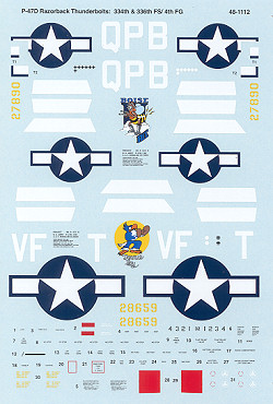 The sheet includes insignia and data markings for one aircraft. A very well done data placement guide is included.