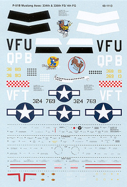 the Mustangs, this sheet carries three P-51Bs with the Tamiya kit being the one