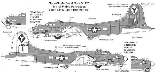 The initial option is 'Flak Happy' from the 416th BS/99 BG operating out of Italy in 1944. It has darker Olive Drab on the fin insert and has the dei-icer boots removed from the wings and horizontal stabs as well.