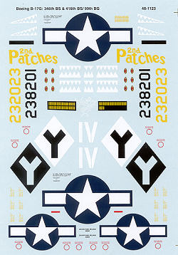 The second scheme is '2nd Patches', with the 346 BS/99 BG. This aircraft has a bare metal fin and rudder (though I thought the rudder was fabric but I may be wrong). The nose turret and fairing need to be painted red before applying the shark-mouth decals.