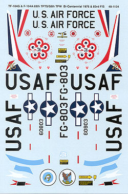 The twin seat version is a TF-104G from the 69 TFTS/58 TTW. These guys trained German F-104 pilots and these planes were owned by the GAF, but in US markings. This is the Bicentennial scheme.