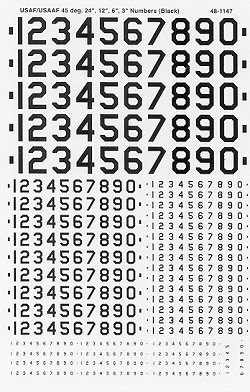 Superscale 48-1147: USAF/USAAF 45 degree Numbers ( Black) |