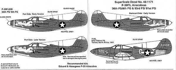 The sheet will fit any 1/48 P-39 and while the Eduard and Hasegawa kits are recommended, I see no reason why your Monogram kit shouldn't work equally as well. Superscale provides insignia, wing walk and data markings for both aircraft.