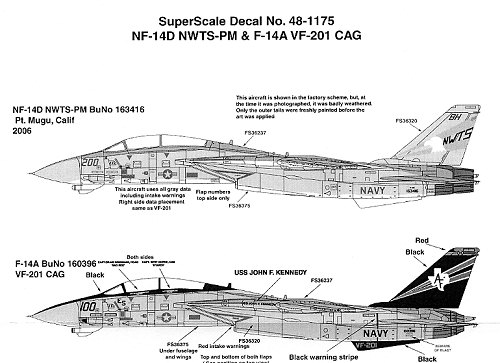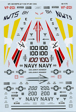 First up is the NF-14D of the Naval Weapons Test Squadron - Point Mugu in a short-lived scheme from 1996 (despite what the sheet says). The tail markings were put over fresh paint, but the rest of the aircraft is rather ratty.