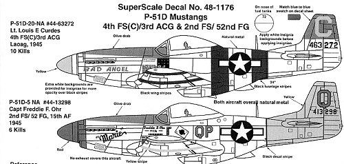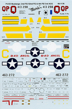 The other is "Marie" from the 2nd FS/52nd FG in 1945. This one has a red nose and full yellow empennage. Yellow wing bands are provided on the decal sheet.