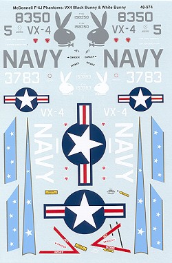 Due to the dearth of markings on the white bunny, there are enough markings to do both aircraft. Most modelers will head for the Hasegawa kit and that is what the decals have been scaled for. Others will pick from what is out there, such as the still nice Monogram kit, or the one by ESCI, which isn't too bad, but rather bare compared to today's standards.