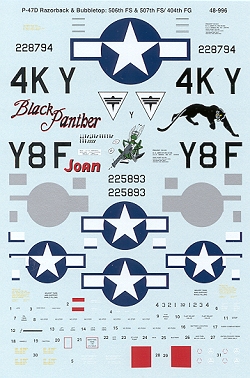 again, a nice pair of P-47 markings options. This sheet is sized for the