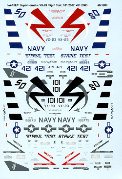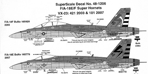 particular sheet has markings for two Super Bugs that were assigned to VX-23: